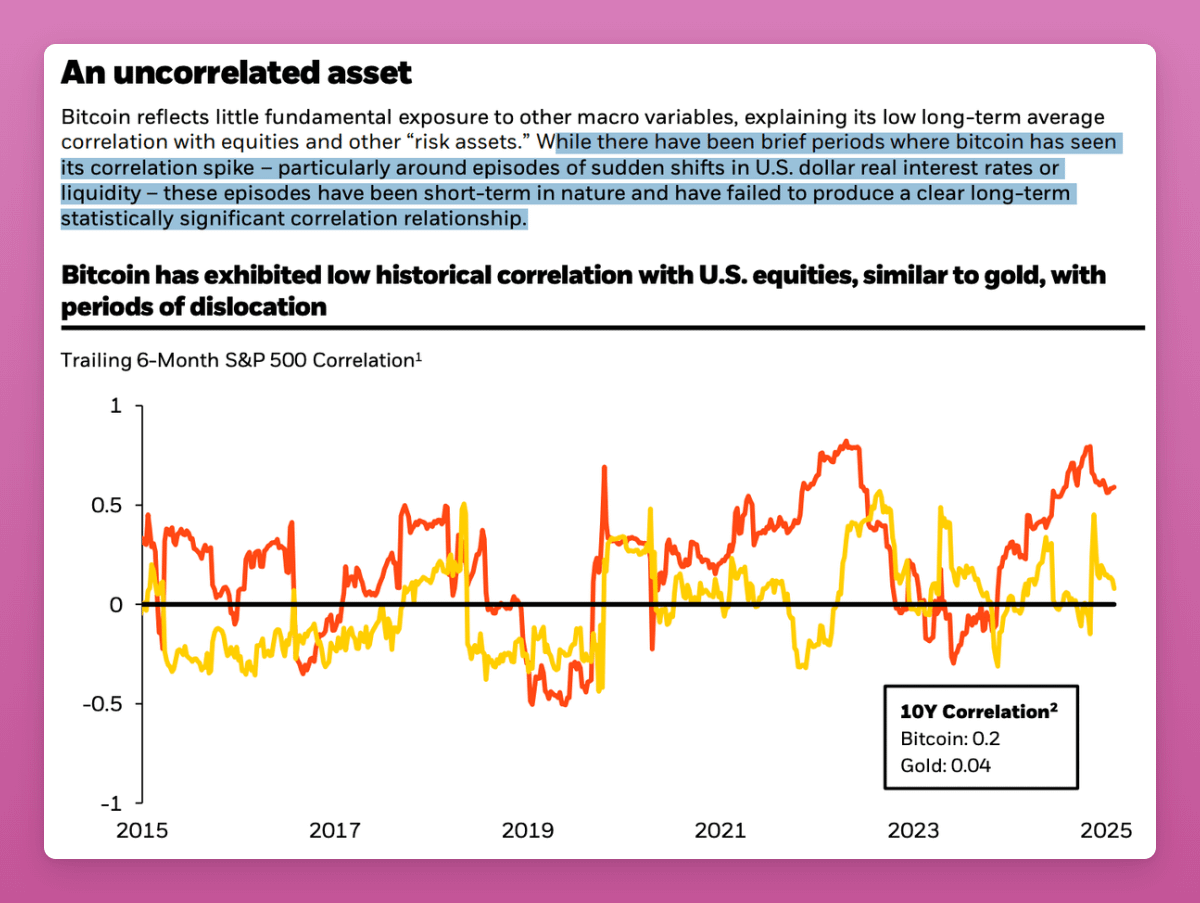 Yet they still believe BTC "as a global, decentralized, fixed-supply, non-sovereign asset" that has a distinct risk/reward profile vs traditional assets.