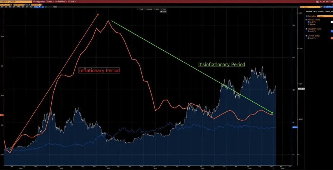 From the above chart, it can be seen that since 2020, BTC has shown a clear negative correlation with CPI—BTC tends to fall during inflationary periods and rebound during disinflationary periods. Under the AI-driven technological revolution, long-term disinflation is a high-probability event—Elon Musk has echoed this view, further validating our argument.