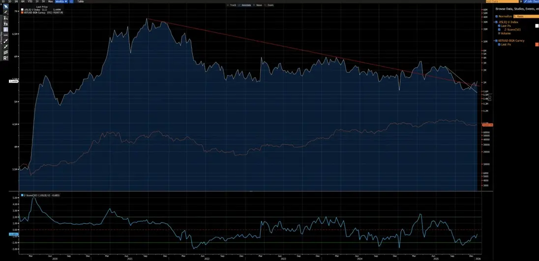 At that time, risk-free interest rates were continuously rising, liquidity was systematically withdrawn, and financial conditions were tightening. In this environment, the primary goal of capital was to avoid risk. What we saw in BTC was essentially a high-level distribution structure during a tightening cycle.