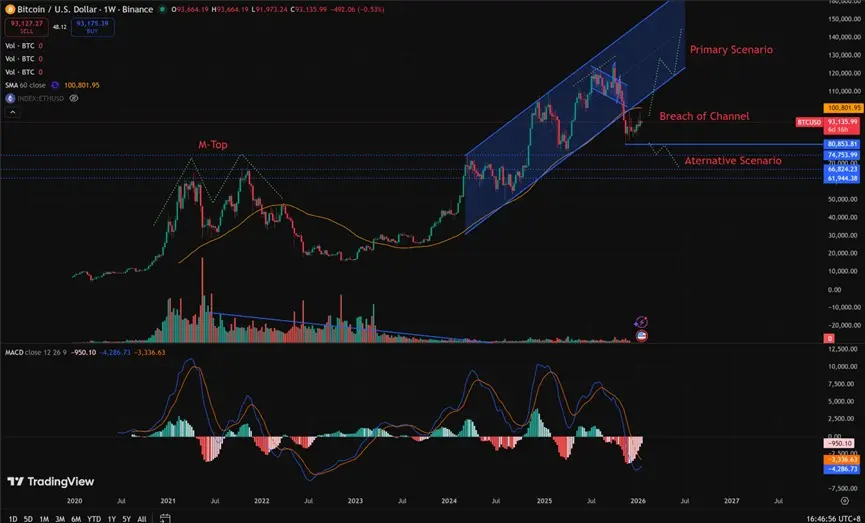 Yes, we cannot completely rule out the possibility of this evolving into a bear market continuation similar to 2022. However, the key is to note that the 80,850 / 62,000 area has undergone sufficient consolidation and chip turnover. This prior chip digestion provides an excellent risk-reward ratio for bullish positioning: upside potential significantly outweighs downside risk.