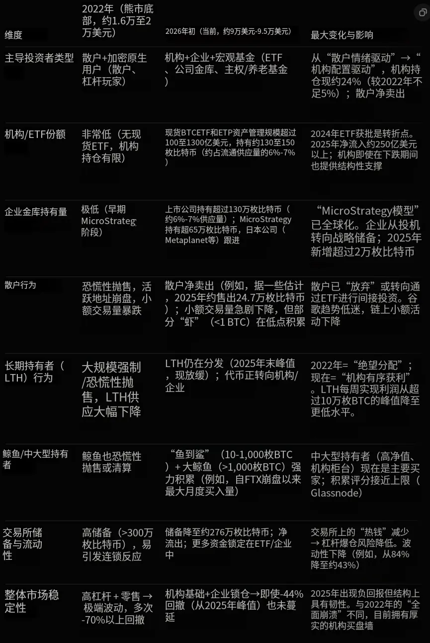 Now (early 2026) compared to 2022, the biggest difference in BTC investor structure is the following transformation:
