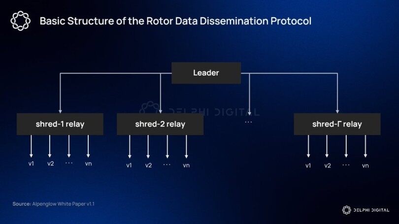 Rotor innovates the block propagation mechanism by routing messages directly through validators with high stakes and stable bandwidth.
