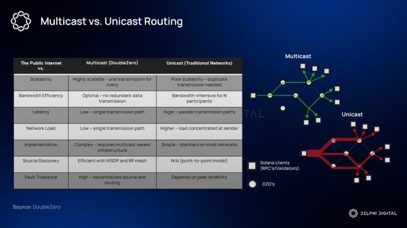 DoubleZero also supports multicast, replicating data within the network and simultaneously delivering it to all validators.