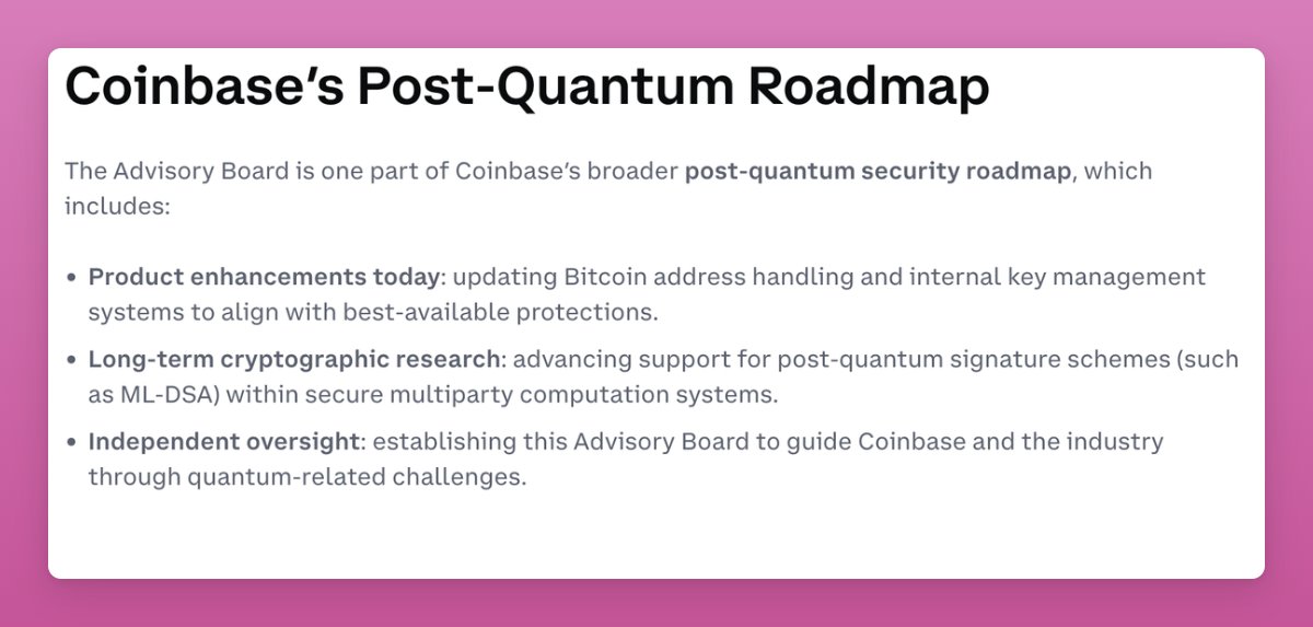 But I think Coinbase's Board on Quantum Computing will help address it.