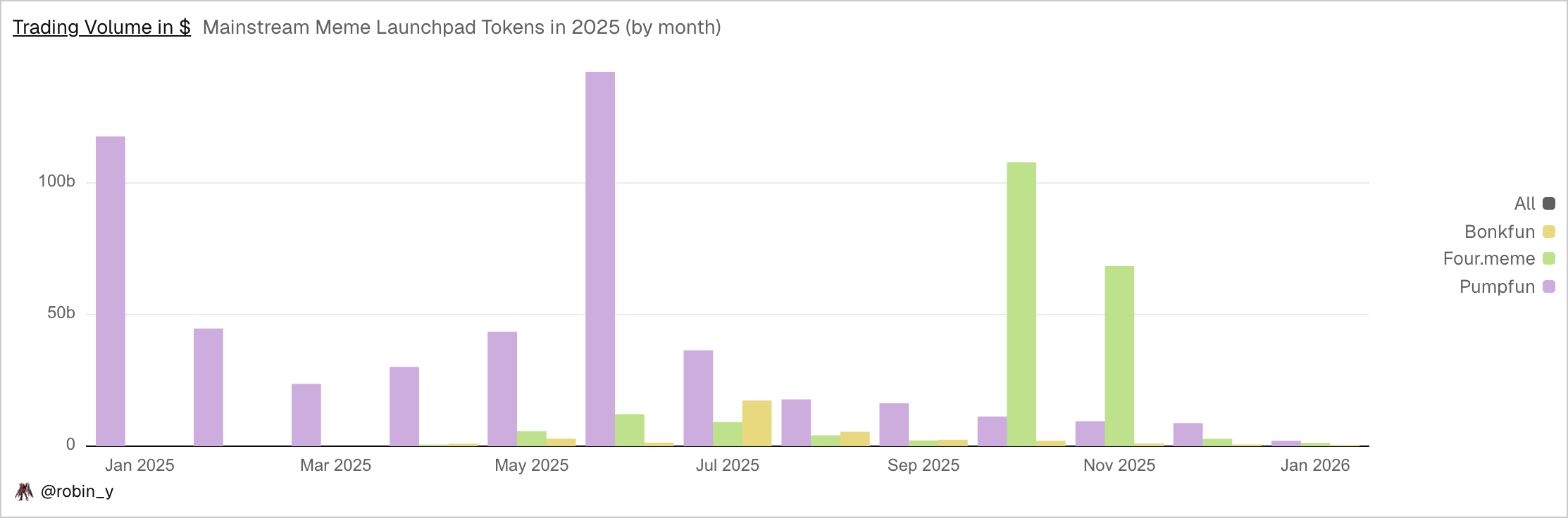 Looking back at 2025, memes remained one of the most important attention gateways on-chain. The emergence of Trump coins, Web2 celebrity coins, Pump.fun live streams, and the Chinese meme wave constituted multiple rounds of varying levels of active cycles, releasing a certain wealth effect during these phases. In these structural markets, many users downloaded wallets for the first time, completed on-chain transactions for the first time, and understood gas fees, slippage, and failure rates for the first time, making memes the most direct and lowest-threshold entry point for users into the on-chain world.