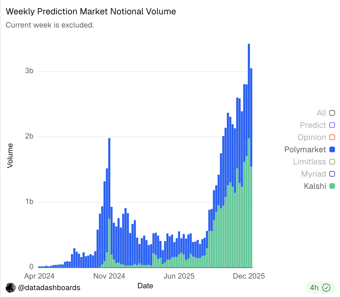 In 2025, prediction markets completed a key leap from being a niche product in crypto to a prototype of mainstream financial applications, with overall trading scale and participation significantly increasing. Currently, the monthly trading volume of mainstream prediction markets has stabilized above $10 billion, with a cumulative trading volume exceeding $40 billion for the year. Although its absolute size is still significantly smaller than that of mature financial markets like stocks and futures, as an independent new asset form, prediction markets have shown an outstanding growth trajectory and have entered a clear phase of accelerated expansion.