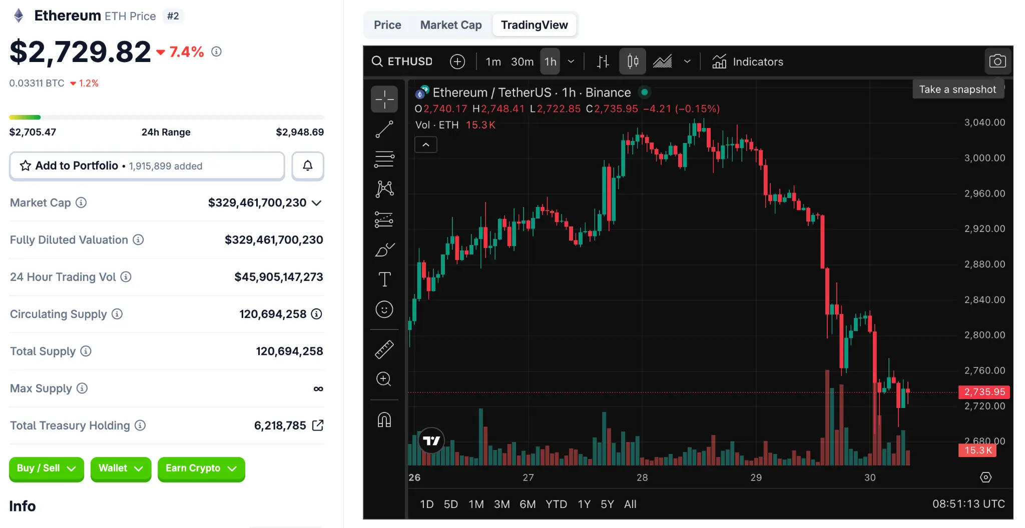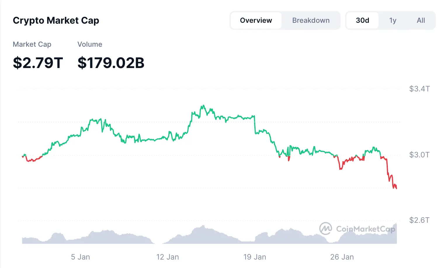 Among mainstream cryptocurrencies, popular tokens like XRP and Solana also experienced similar single-day declines. Overall, the total market capitalization of the cryptocurrency market dropped by about 5%, currently standing at $2.79 trillion.