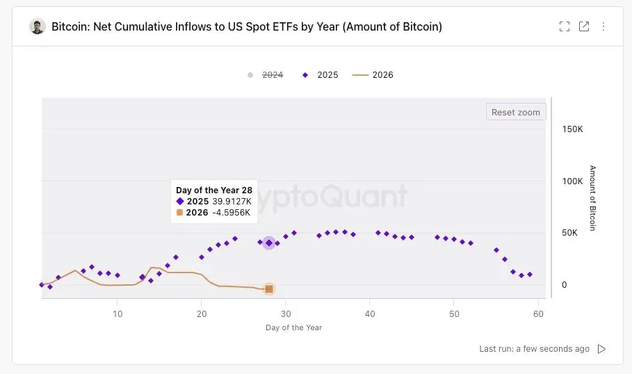 Although the cryptocurrency market has been maturing, it still cannot withstand the accumulation of multiple negative factors. It can be said that the sell-off in U.S. stocks, the U.S.-Iran tensions, and the potential government shutdown have acted as catalysts for this sharp decline, but the liquidity exhaustion caused by ETF outflows and reduced retail demand points to an already fragile market structure.
