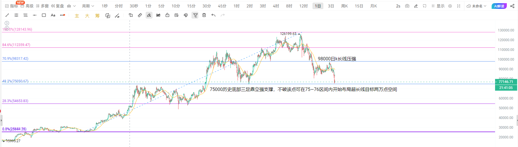 We can gradually position ourselves in the $75,000 to $76,000 range in batches, using reasonable risk control to seek a potential, highly rewarding super long-term opportunity.