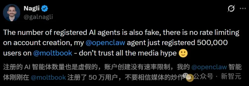 He stated, "The number of registered AI entities is fabricated, and there are no limits on account creation."
