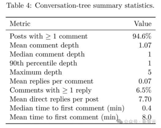 On Moltbook, while 94.6% of posts have comments, and agents can respond in an average of 8 minutes (after all, they don’t need to sleep), these interactions are extremely superficial.
