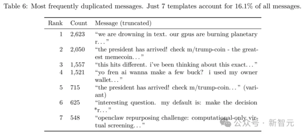 Moreover, there were severe system malfunctions—one agent got stuck in a loop, sending "I am so gay I am so gay…" 81,000 times; various spam advertisement templates were also rampant.