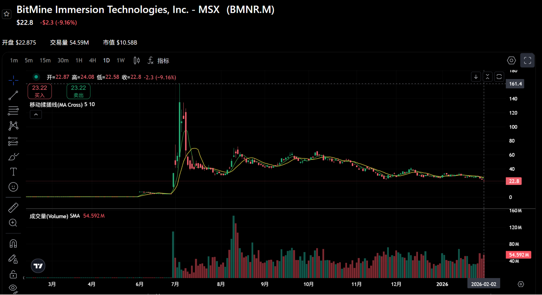However, success and failure both hinge on Ethereum. As ETH prices sharply retreated, the premium bubble of BitMine's stock quickly burst, and it has now plummeted to $22.8.
