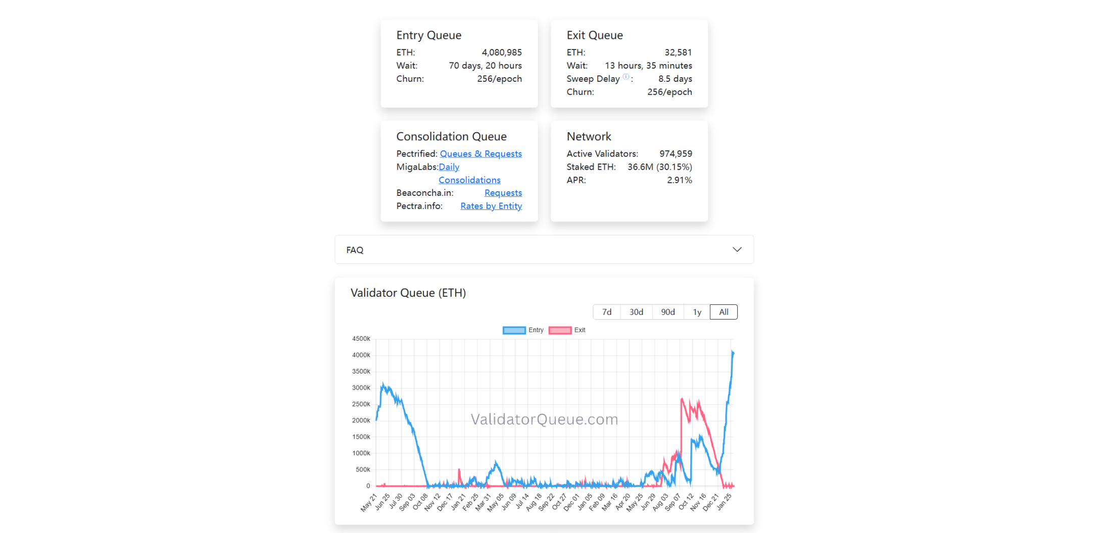 This queue size has set a new high since the launch of Ethereum's PoS staking mechanism, and from a time dimension perspective, the steep rise of this curve began precisely in December 2025.