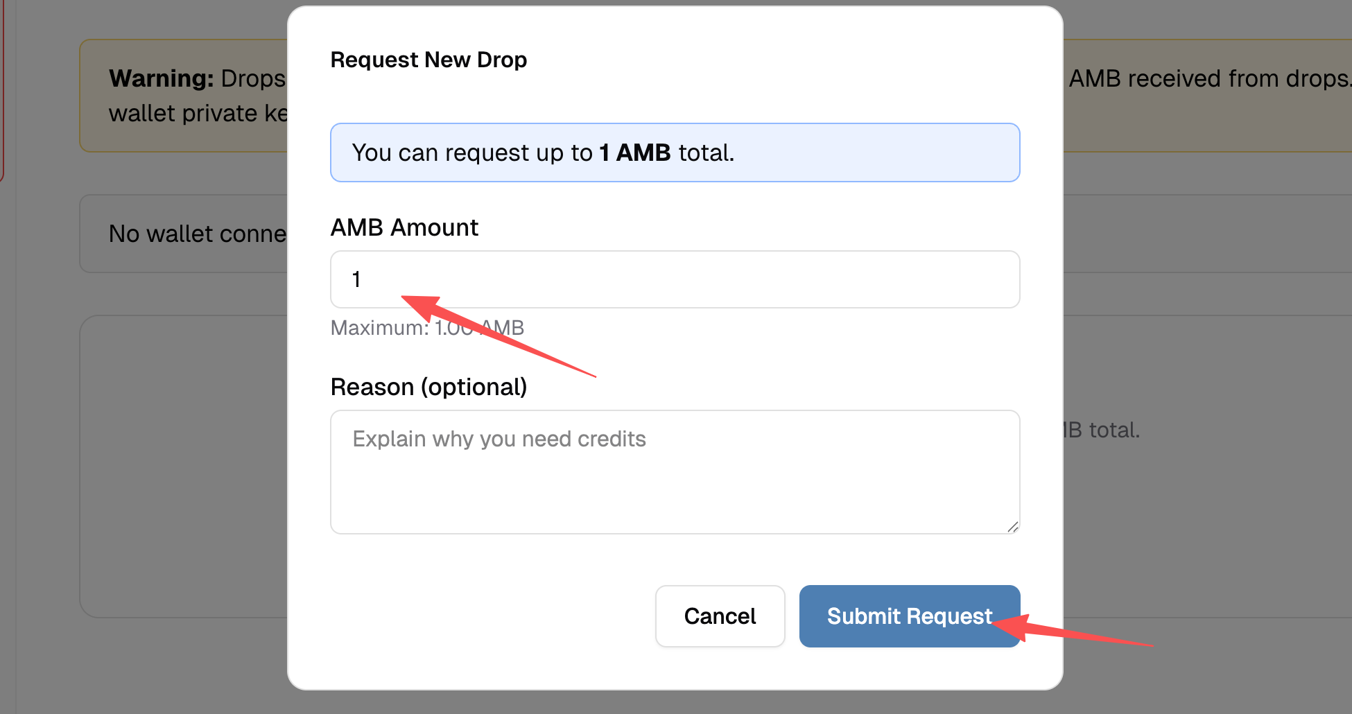 STEP 4. Click "Drops" and select "Create drop request," enter "1" and click "Submit Request."