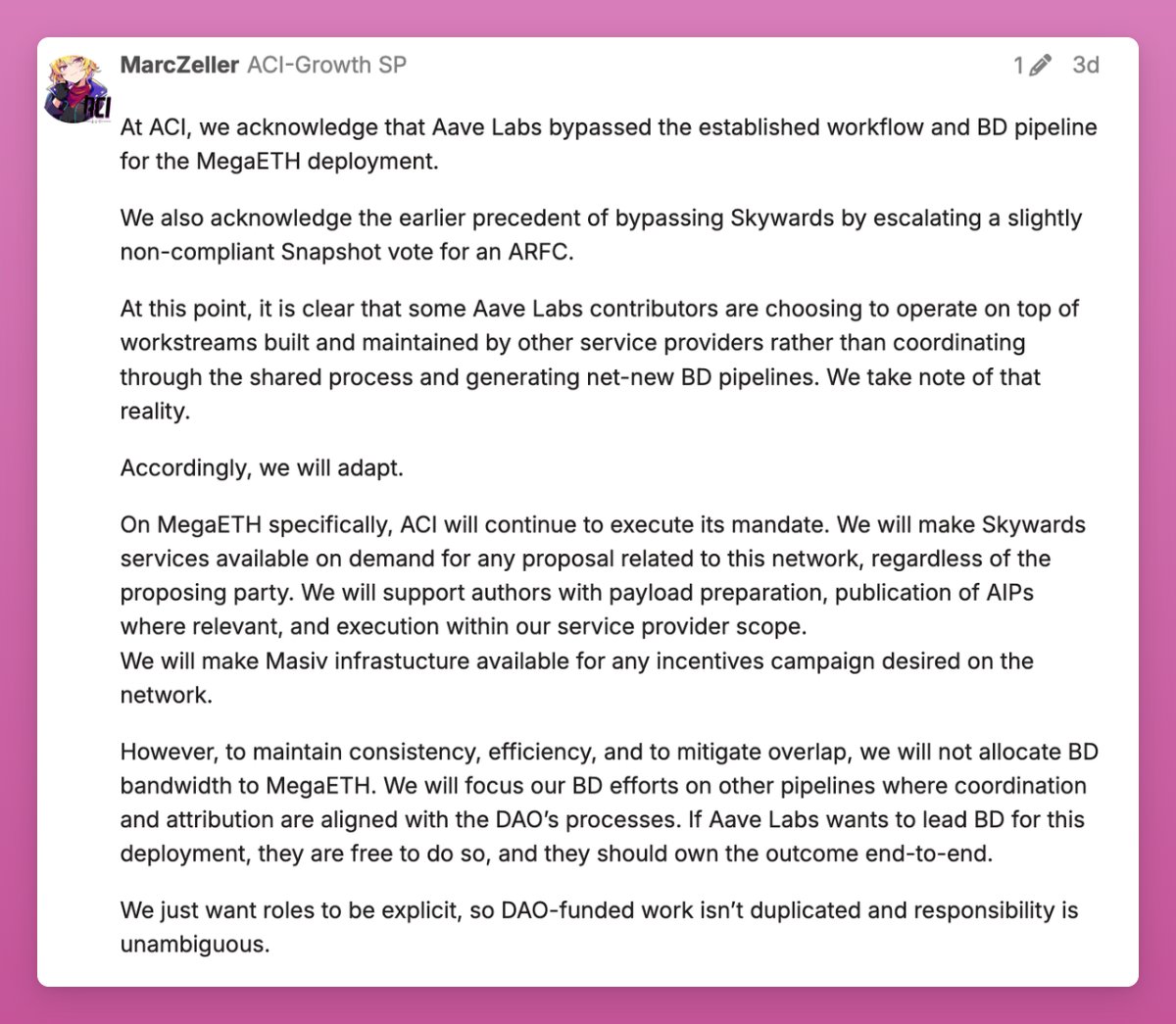 Aave DAO internal conflict making MegaETH deployment into collateral damage.