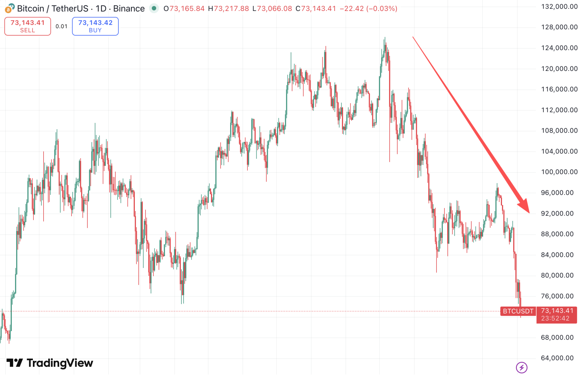 According to Bloomberg, Bitcoin briefly fell to $71,739 in New York's late trading on Wednesday, marking the first time in about 15 months that it has dropped below $72,000. Compared to the peak in October last year, Bitcoin has retraced over 42%, with a year-to-date decline of about 17%, sliding to its lowest level since November 6, 2024.