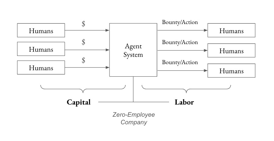 Marc Andreessen's famous quote, "The spread of computers and the internet will divide work into two categories: those who tell computers what to do and those who are told what to do by computers," is more true today than ever. I expect that in the rapidly evolving agent/human hierarchy, humans will play two distinct roles—labor contributors executing small, bounty-style tasks on behalf of agents, and providing strategic input to serve the agent's North Star through a decentralized board.