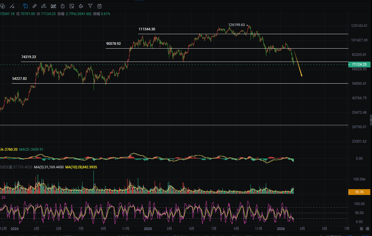 The recent sharp decline in the cryptocurrency bear market is primarily due to a resonance of multiple factors. The nomination of the Federal Reserve Chairman has triggered adjustments in monetary policy expectations, leading to capital withdrawal due to market uncertainty. Additionally, Bitcoin has fallen in sync with risk assets like the Nasdaq, and during geopolitical tensions, it did not follow gold's rise; instead, there has been a shift of funds towards precious metals. The short-term safe-haven attributes are being challenged, and prices are more influenced by liquidity and institutional positions. The high leverage characteristic of the crypto market has caused prices to trigger profit-taking and leverage liquidations after breaking key levels. The extreme fear brought about by the continuous decline has also shaken investors' long-term narratives and short-term pricing of crypto assets, creating a crisis of faith and making the market bottom even more elusive. However, looking at historical trends, such declines have been common in the past, so there is no need to panic. Yanling personally predicts that this bear market will likely bottom out around 55,000, followed by consolidation and the start of the next bull market rebound.