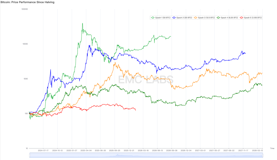 Based on this judgment, EMC Labs believes that the depth and duration of the current adjustment, which began in October, will exceed the three "cooling bear markets" since January 2023, aligning more closely with the "deep bear market" of the previous four-year halving cycle. Whether the adjustment depth exceeds 70% and whether the decline duration approaches 12 months will depend on the vulnerability and clearing time of on-site institutions, changes in U.S. macro liquidity, and the progress of relevant U.S. industrial policies.