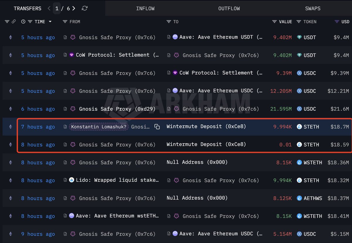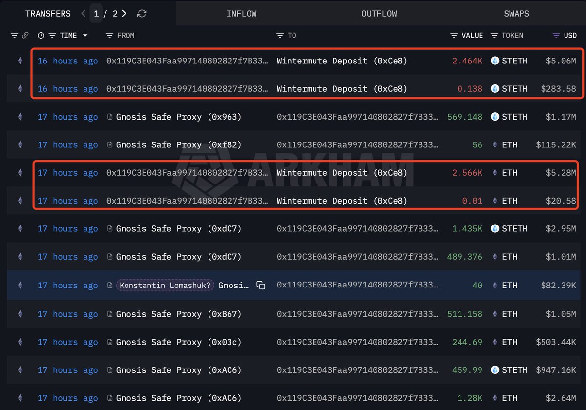 Two wallets possibly linked to him sent 12,458 $stETH($23.76M) and 2,566 $ETH($5.38M) to Wintermute.
