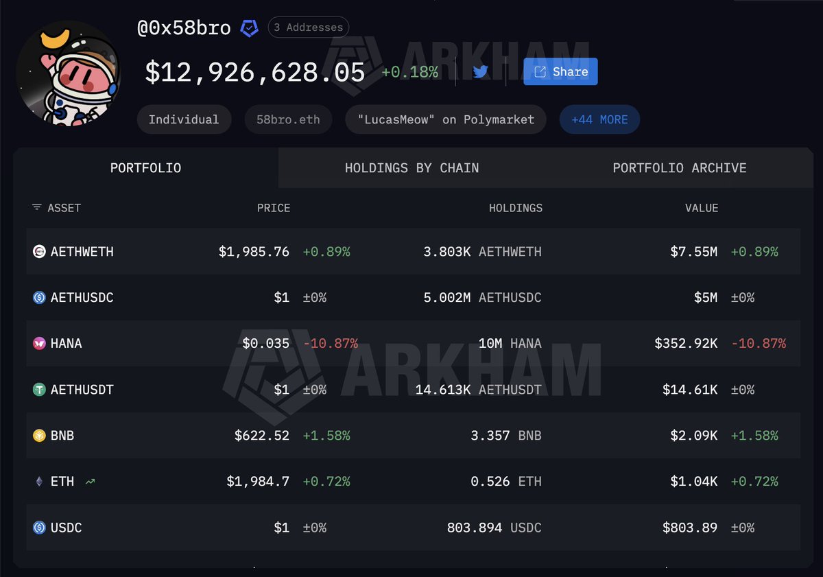 He only has 1.3K followers on X, but 0x58bro is a multimillionaire trader currently up $7M on his positions. He’s shorting EVERYTHING.