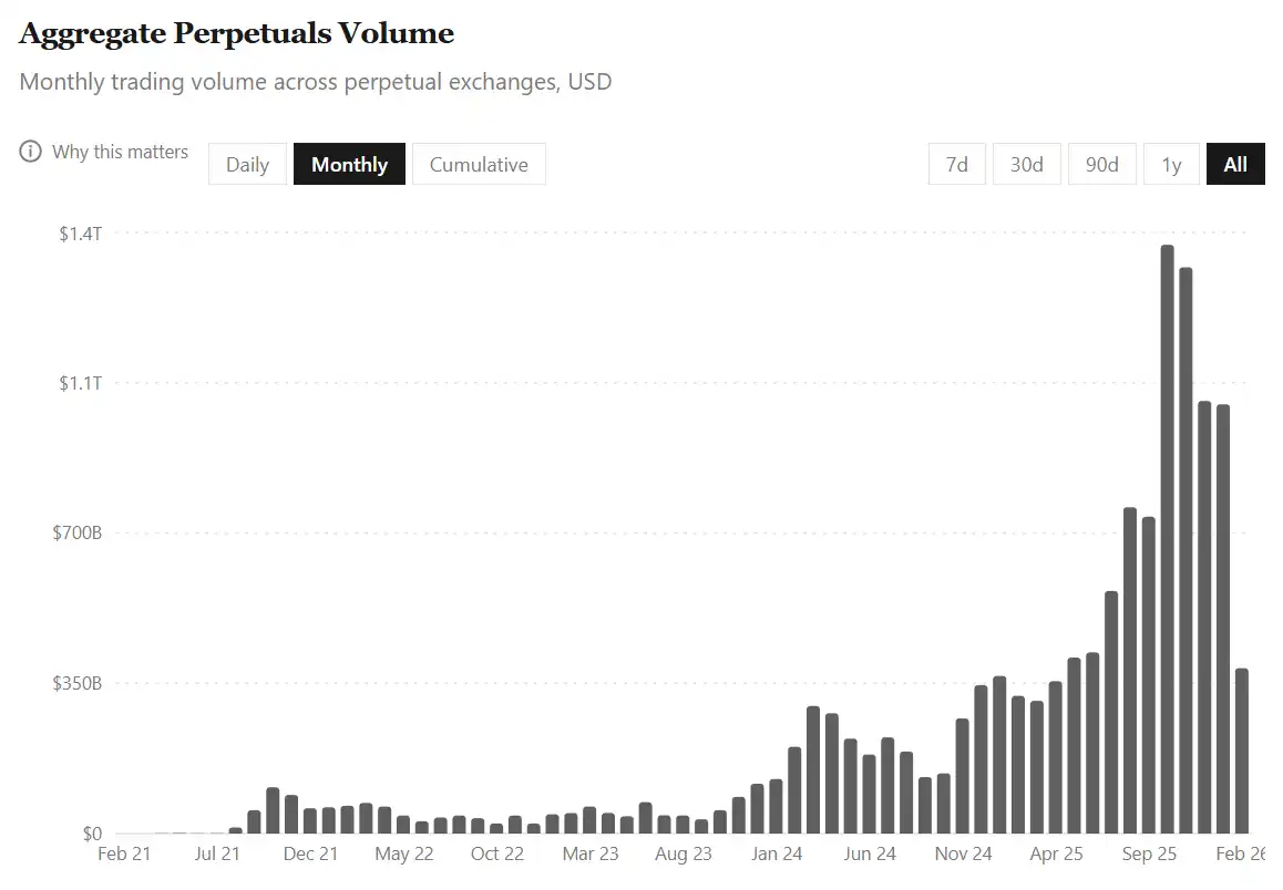 All this growth occurred against the backdrop of the total cryptocurrency market capitalization shrinking by nearly 40% between August 1, 2025, and February 9, 2026. This level of activity indicates that traders are increasingly leaning towards derivatives trading, hedging, and short-term positioning, especially when the spot market becomes highly volatile and bearish.