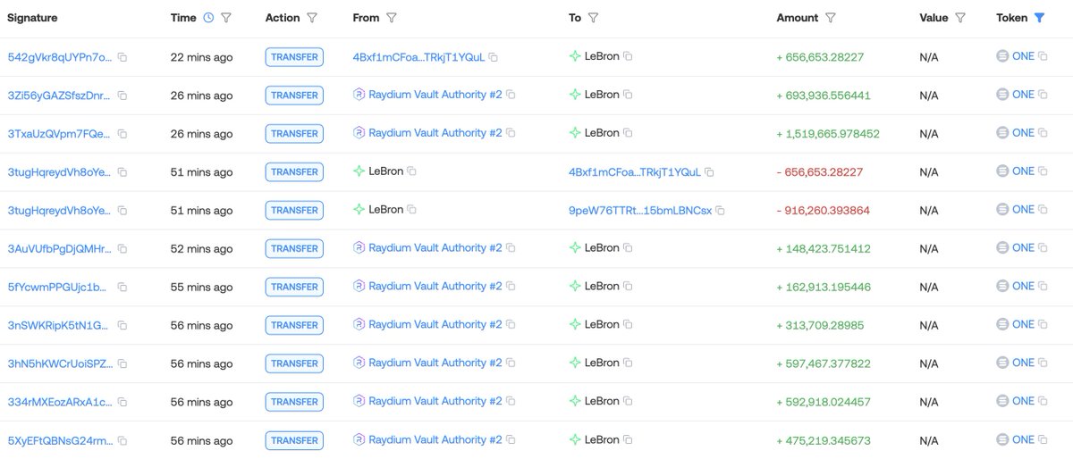 Even LeBron — the legend who made $8.9M on $MELANIA, $3.2M on $TRUMP, $4.56M on $LIBRA, and $1M on $HARRYBOLZ — is now deeply underwater on $ONE.
