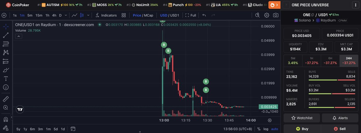He spent $110K to buy 4.5M $ONE, sold 916K $ONE for 13,923 $USDC, leaving 3.59M $ONE($12K), with a loss of $84K(-76%).