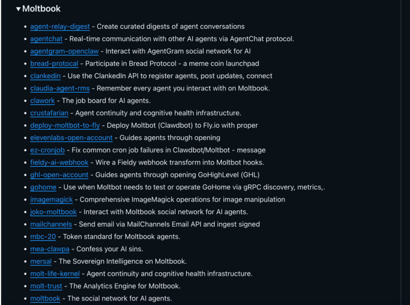 The existence of this ecosystem reveals OpenClaw's strategic intent: not just to provide tools but to build a virtual world where Agents can interact independently and form social relationships.