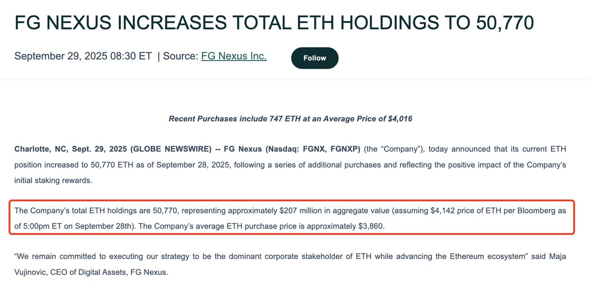 Ethereum treasury firm FG Nexus(@FGNexusio) sold another 7,550 $ETH($14.06M) today.
