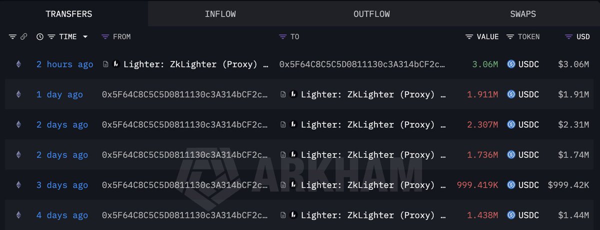 0x5F64 deposited 8.39M $USDC into #Lighter to long $ARC.