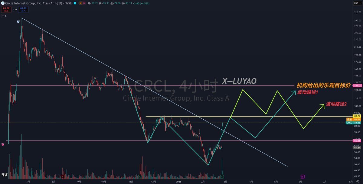 But if the overall cryptocurrency market continues to feel low, CRCL is unlikely to make a significant one-sided breakthrough to a new high; it is suitable for making waves of high selling and low buying.