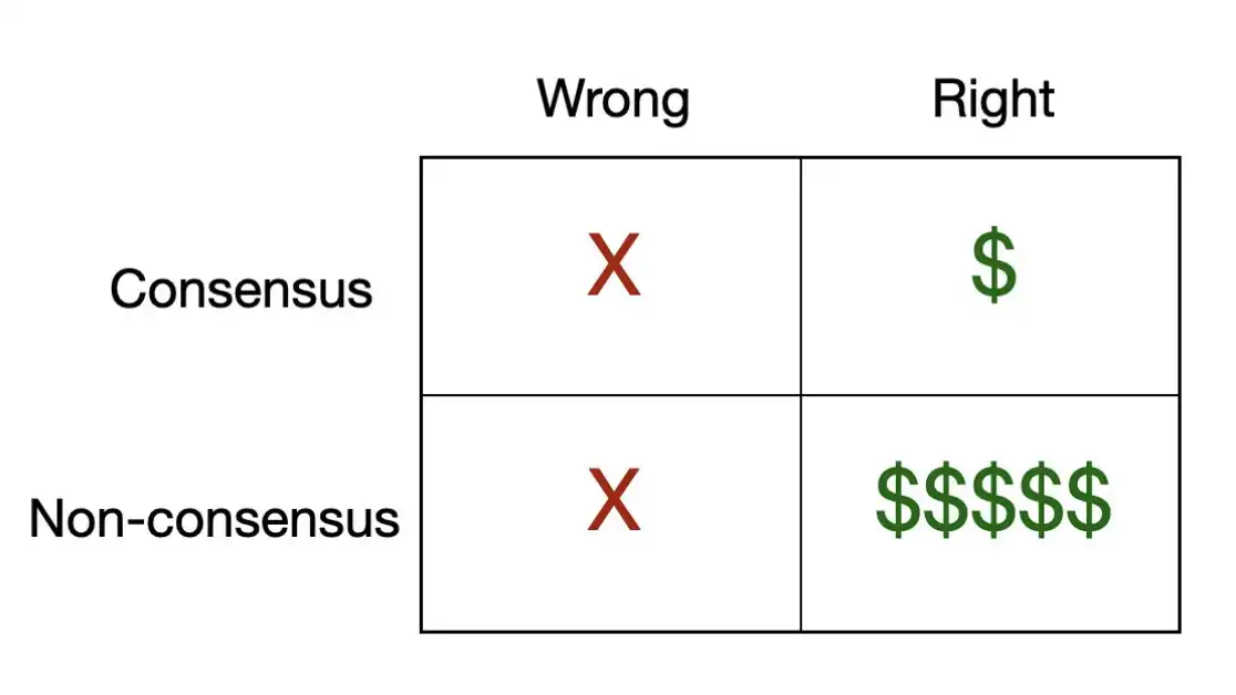 Almost all the real money is made from those "non-consensus but correct" trades. The reason is that these deals are often structurally undervalued in pricing, and your chances of getting a return of 100 times or more almost entirely comes from here.