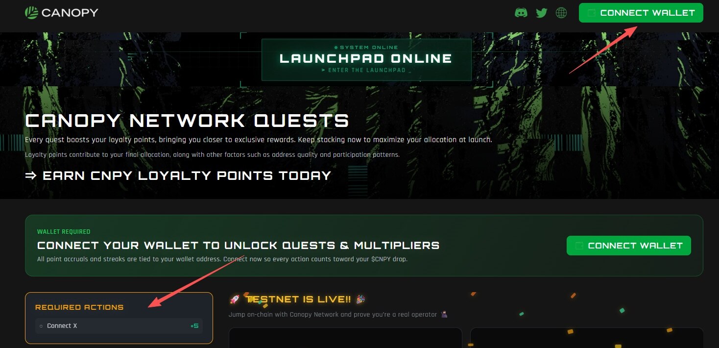STEP 1. Enter the activity interface (link: https://rewards.canopynetwork.org/), and connect your wallet and personal X account.