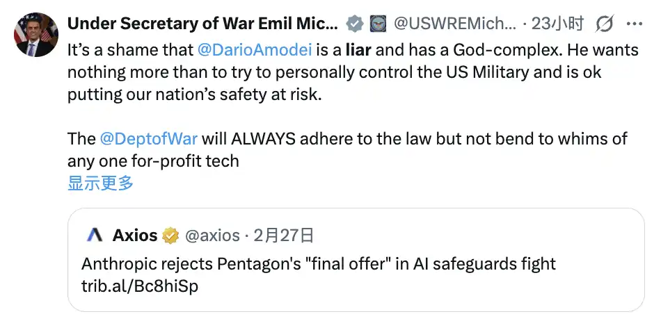 Second, is the actual difficulty of government replacement. Departments within the Pentagon that use Claude admit: Claude is currently one of the most powerful available AI models, and Musk's Grok still lags behind it in technical capability. Replacing it means downgrading. Who will bear this cost?