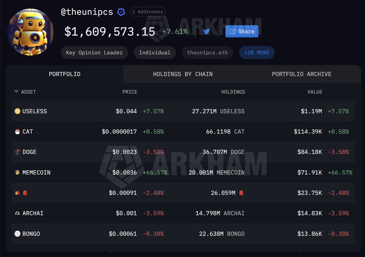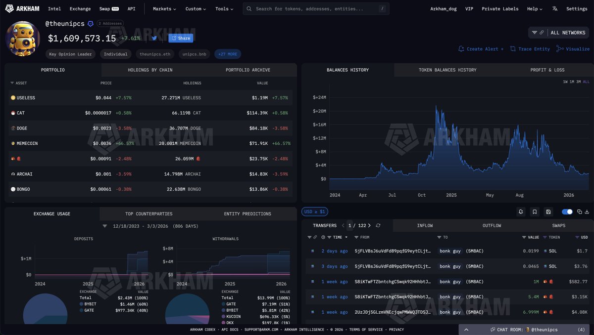 Bonk Guy is not only holding his entire bag of USELESS (currently worth $1.18M) but he is also still holding his DOGE (worth $85.6K), which caused his portfolio high in 2024. Will he ever make it back?