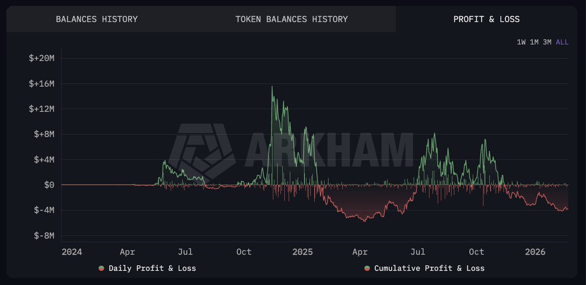 Bonk Guy’s holdings are down $20M since his on-chain portfolio highs at the end of 2024, and down $15M since the USELESS peak in July 2025. But he’s still holding.
