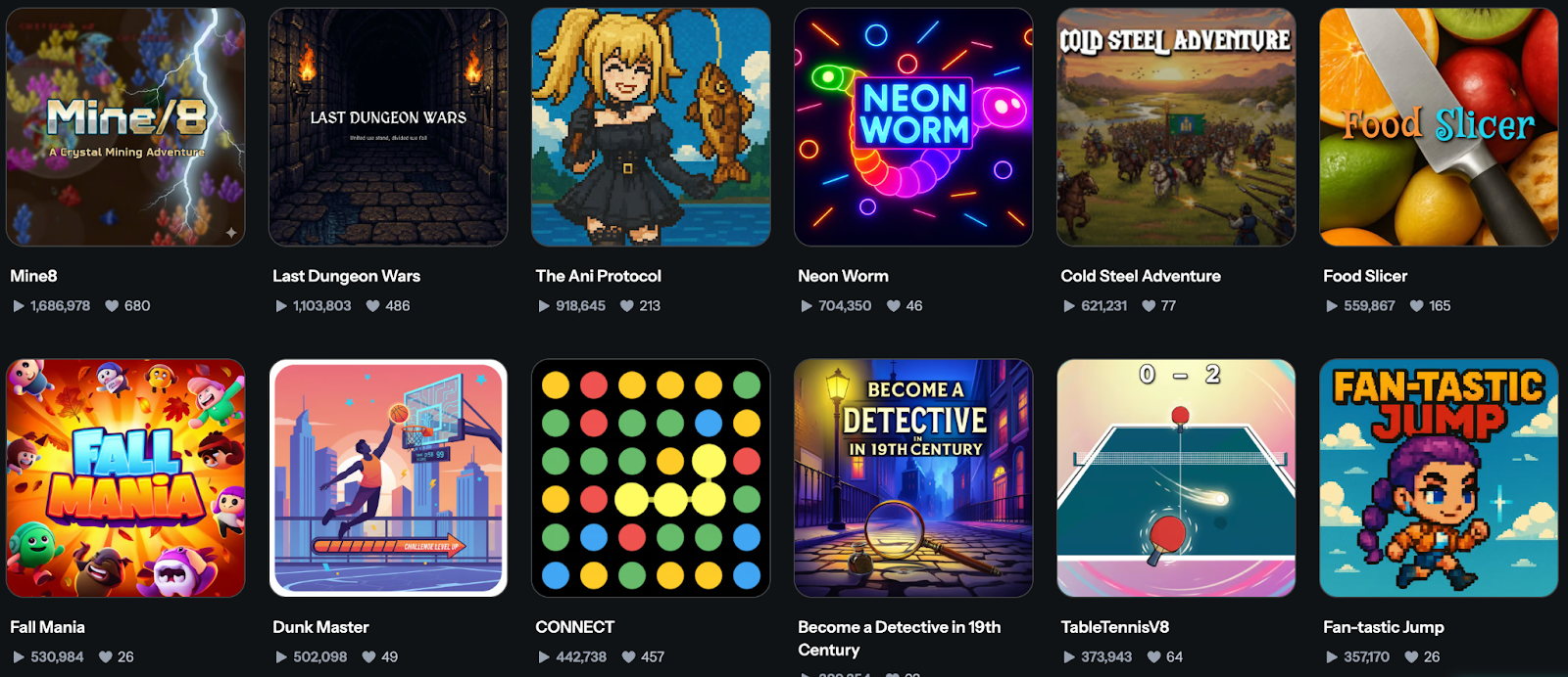 If a comparison must be made, Verse8 can be understood as “the game version of TikTok.” It allows anyone to create and publish a large number of AI-generated mini games, with diverse themes, gameplay, and styles; the aforementioned Mine8 is currently the most popular mini game on the platform. Likes, shares, and spreads, the game itself is also beginning to show a form of content and socialization.