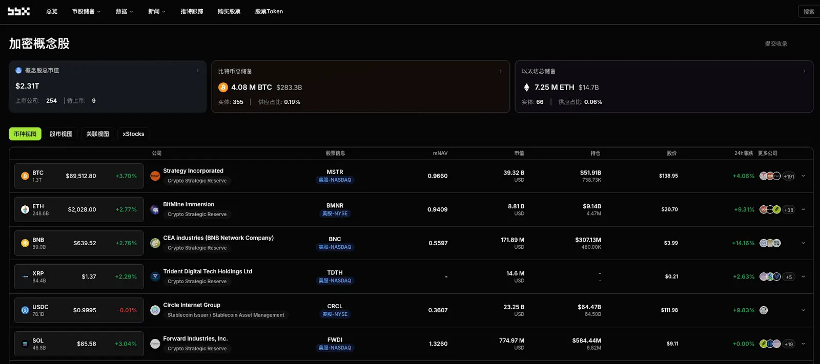 Data source:https://bbx.com/ Cryptocurrency concept stock information database, based on announcements from globally listed companies and SEC/TSE disclosure documents from yesterday.