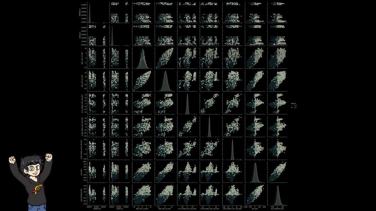Before training the model, he first plotted all the variables in pairs to create a giant scatter plot matrix (SNS pairplot) in search of patterns that could distinguish winners from losers.