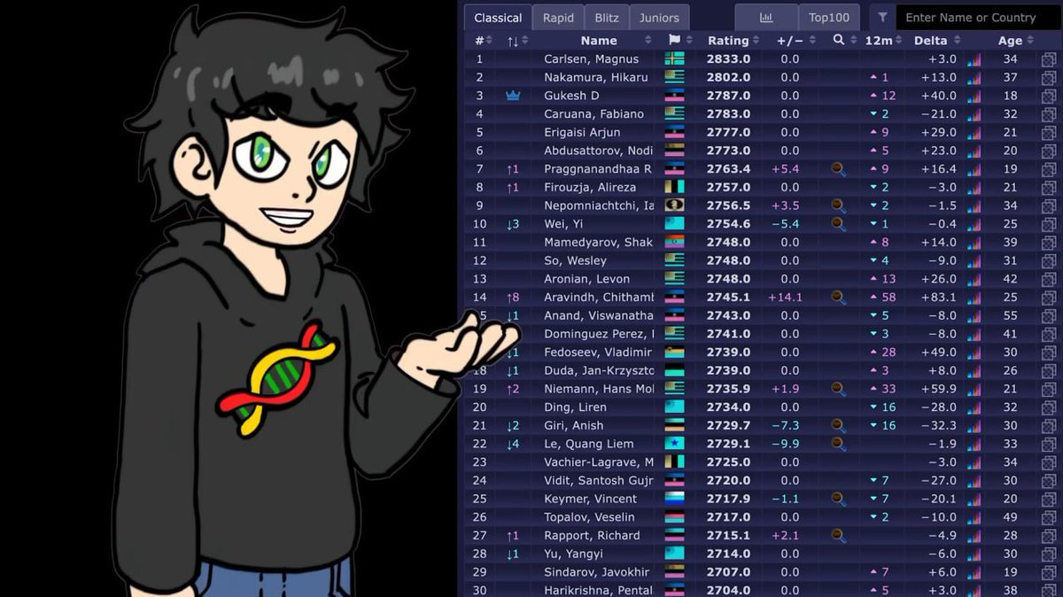 ELO is a method for assessing player skill levels, originally applied to chess. The current world number one in chess, Magnus Carlsen, has a rating of 2833 points.