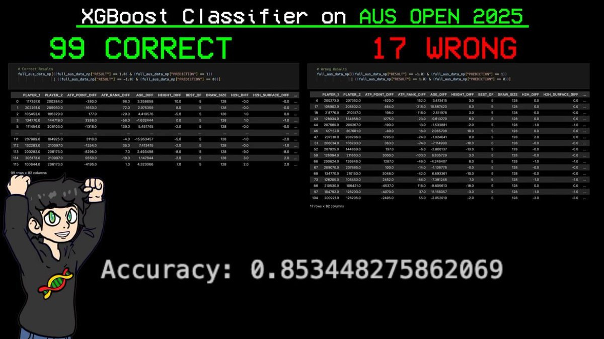 It then correctly predicted 99 out of 116 matches at this year's Australian Open, achieving an accuracy of 85%!