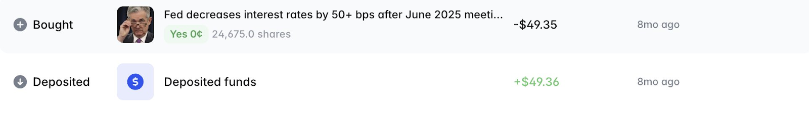 You know what ultimately helped me? I was on the basketball court at the time, pulled out my phone, and placed a $50 bet on Polymarket, purely to try. Not $5,000, just $50. The stakes were low, real money was involved, and there was almost no chance of winning—but I just wanted to experience what placing a bet felt like.