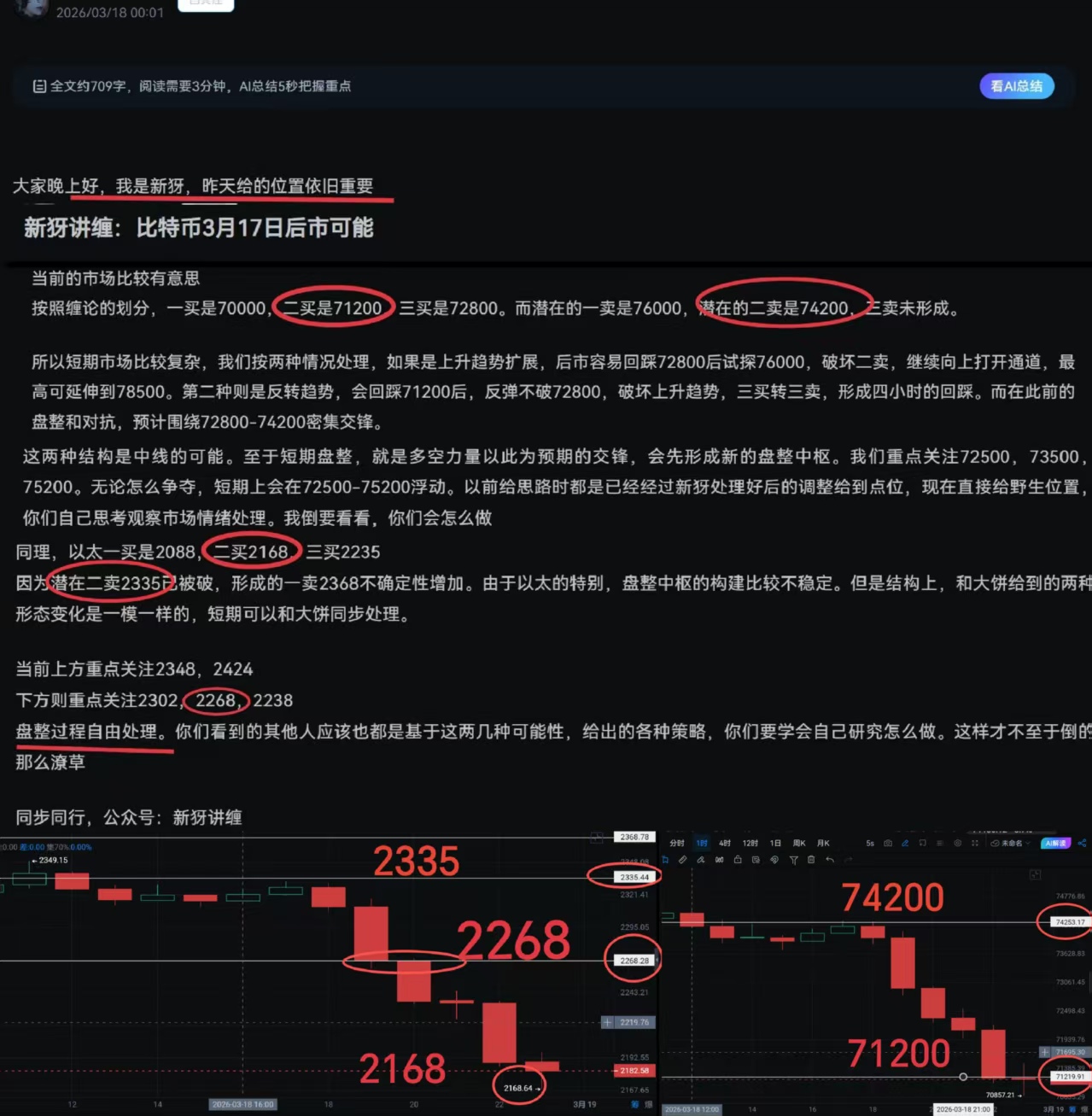 We continue with the second possibility given on the seventeenth. ETH at 2235 and 2168 is converted to a first and second sell, with a third sell not being formed. Due to the lack of synchronization between BTC and ETH, we can only set 71200 and 70000 as a first and second sell. The strategy is mainly short, with rebound reference at the lower positions.
