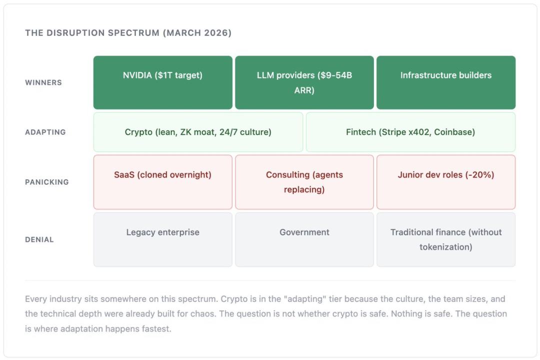 Compared to SaaS? All functionalities can be copied by AI overnight. Compared to consulting? Agents are replacing analysts. Compared to entry-level development positions? Employment rates have dropped by 20% in two years.