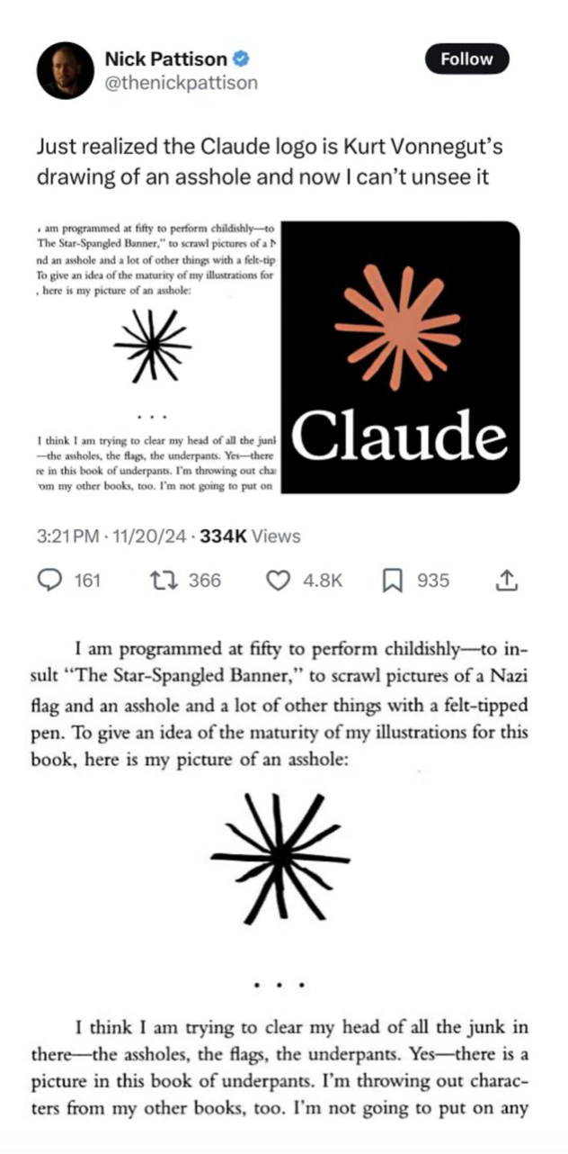Vonnegut drew the anus because he felt it was the only honest organ. Decades later, the same shape appeared at the press conference of a tech company, named the "core of the connection between humanity and intelligence."