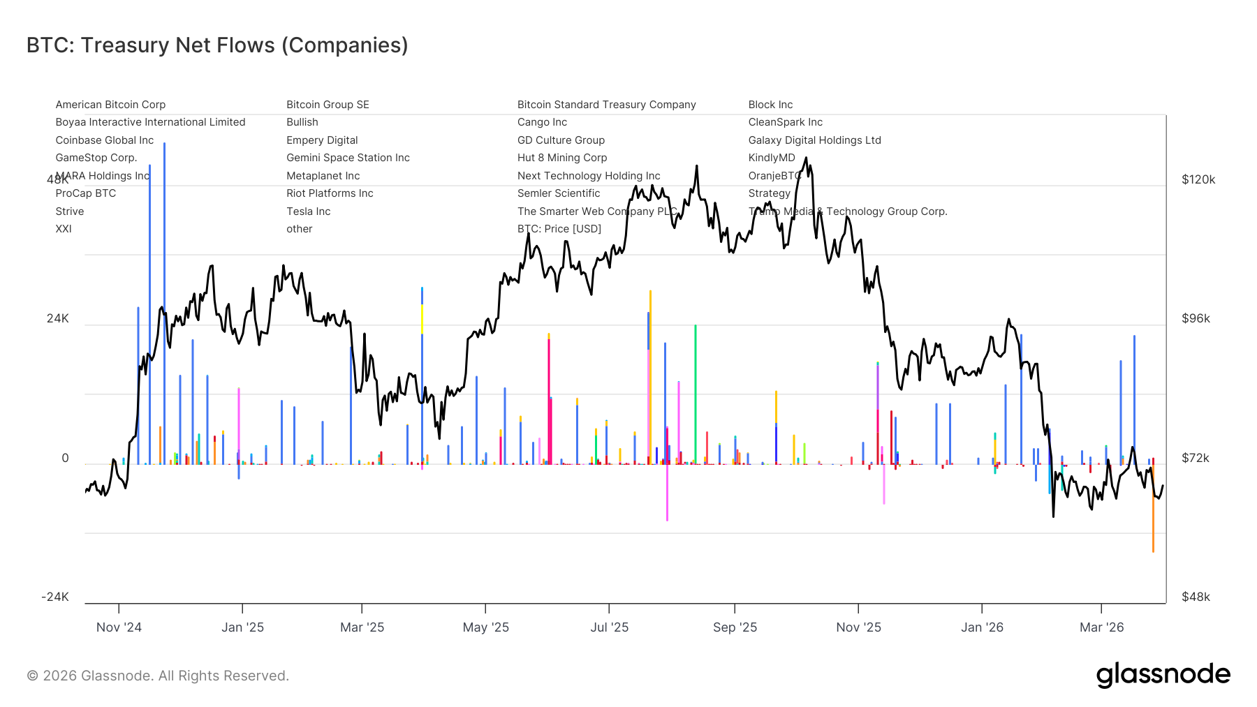 Most notably, Marathon has sold about 15,000 BTC, which is one of the clearest examples of corporate treasuries reducing rather than increasing exposure. In contrast, Strategy appears to remain the only consistent structural buyer; even as participation from other companies has become more sporadic, this company continues to make regular purchases.