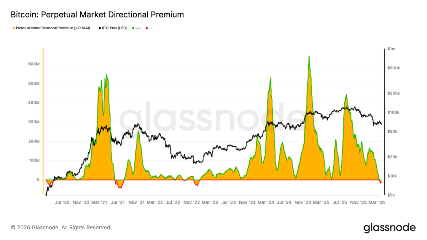 The directional premium in the perpetual contract market continues to compress, with a 30-day total now approaching neutral levels and slightly below zero. This marks a clear cooling of the previously bullish conditions that supported the price rise.
