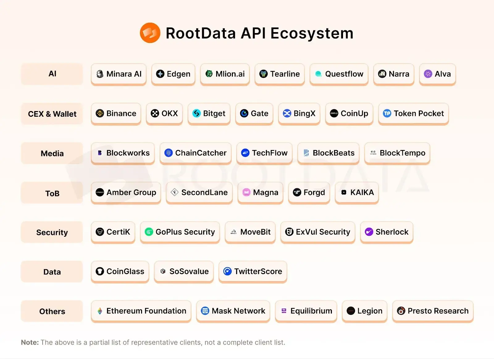 Currently, over 200 institutions, including Binance Wallet and OKX Wallet, have deeply integrated RootData's data.
